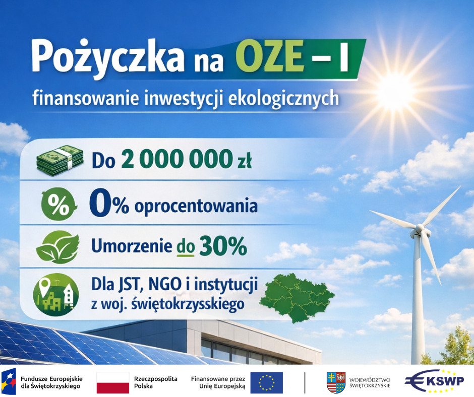 Pożyczka na OZE – I to preferencyjne wsparcie finansowe przeznaczone na realizację inwestycji w odnawialne źródła energii na terenie województwa świętokrzyskiego. Instrument umożliwia sfinansowanie projektów poprawiających efektywność energetyczną oraz zwiększających wykorzystanie energii ze źródeł odnawialnych.